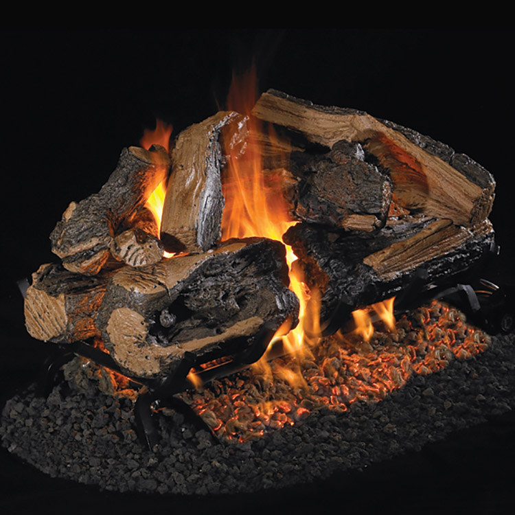 30" Charred Rugged Split Oak Vented Log Set / G45 See-Thru Ember Burner - Peterson Real Fyre